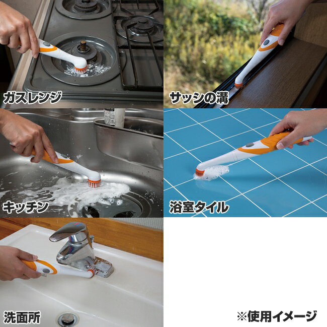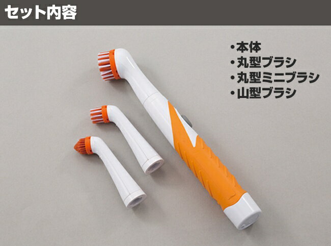 高速回転でガンコな汚れを落とす! 電動おそうじブラシセット ブラシ3種&パッド4種付属 コードレス 防滴 乾電池式【 掃除用具 掃除ブラシ たわし ポリッシャー 洗濯 キッチン 台所 小型 軽量 便利 ◎ ◇ 8000回転ブラシP