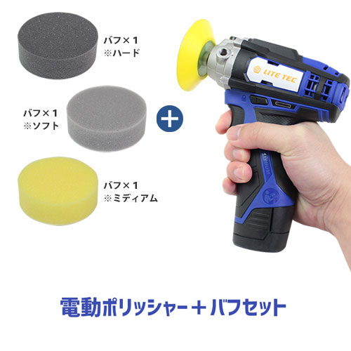 クーポン利用で最大1500円割引!【ポリッシャー&バフセット】車磨き 自動車 電動ポリッシャー バフセット 小型 コードレス 車 長輝ライトテック DS-01 バフ黒色x1 バフ灰色x1 バフ黄色x1