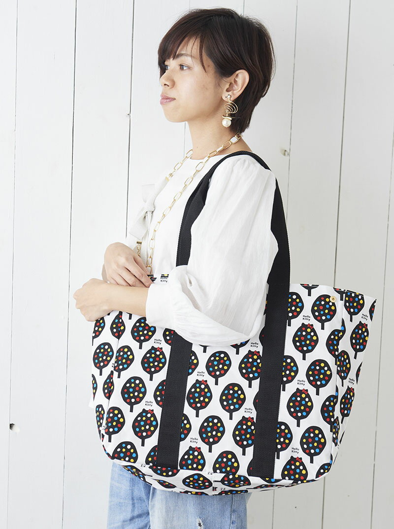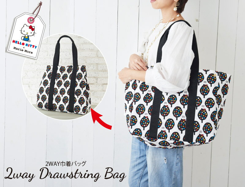 【送料無料 / あす楽対応】キティちゃん 大人 大きめ トートバッグ marie more メアリーモア ツリー柄 大容量 巾着型バッグ MM-0032MK-TR