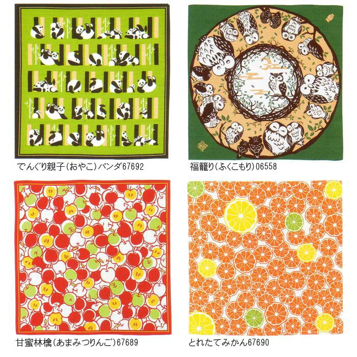 おすすめ 小風呂敷袋入れ 一三巾(50角)綿100 染料染め(でんぐり親子パンダ/福籠り/甘蜜林檎/とれたてみかん)おすすめ