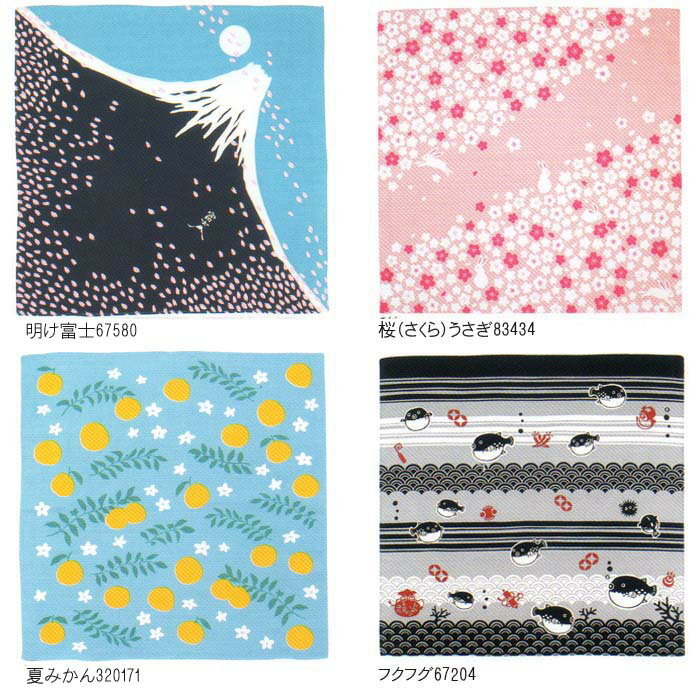 おすすめ 小風呂敷袋入れ 一三巾(50角)綿100 染料染め(明け富士/桜うさぎ/夏みかん/フクフグ)おすすめ